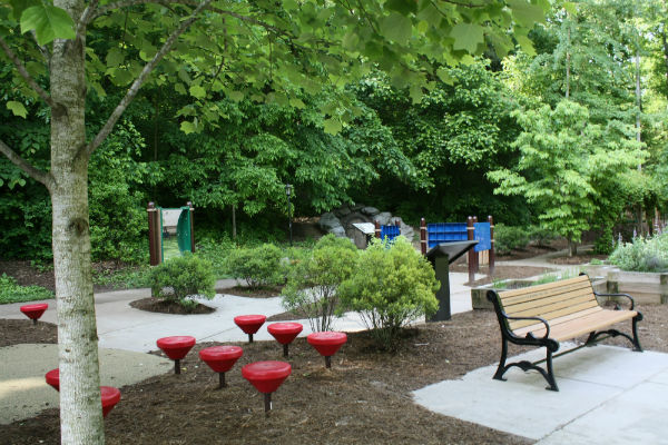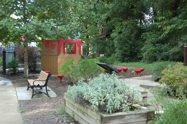 This area is filled with many unique play opportunities designed to engage children in using both natural and man-made elements. From a xylophone to a puppet theater, from an herb garden to a vine-covered arbor, children of all ages and abilities will learn while they play.