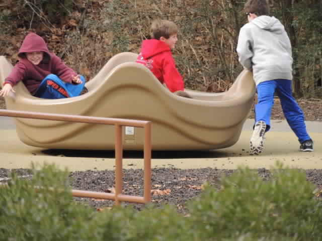 The Omni Spinner is a rotating playground structure designed for children of all abilities, including those who utilize wheelchairs. The Omni Spinner features high-backed seats, transfer points from wheelchair of walker, durable craftsmanship, and a speed limiter for safety.